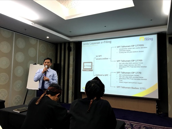 KPP Bandung Bojonagara kembali memberikan sosialisasi dan asistensi pengisian SPT Tahunan melalui e-Filing bagi para karyawan hotel Holiday Inn Bandung (Rabu, 5/2). Sebanyak 82 karyawan hotel Holiday Inn Bandung hadir dalam pelatihan yang dilaksanakan di salah satu ruang rapat hotel Holiday Inn, Jalan Dr. Djunjunan No. 96, Pasteur, Bandung.