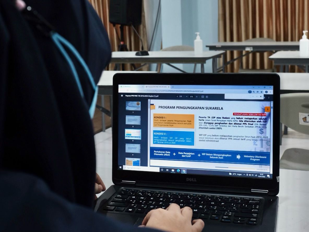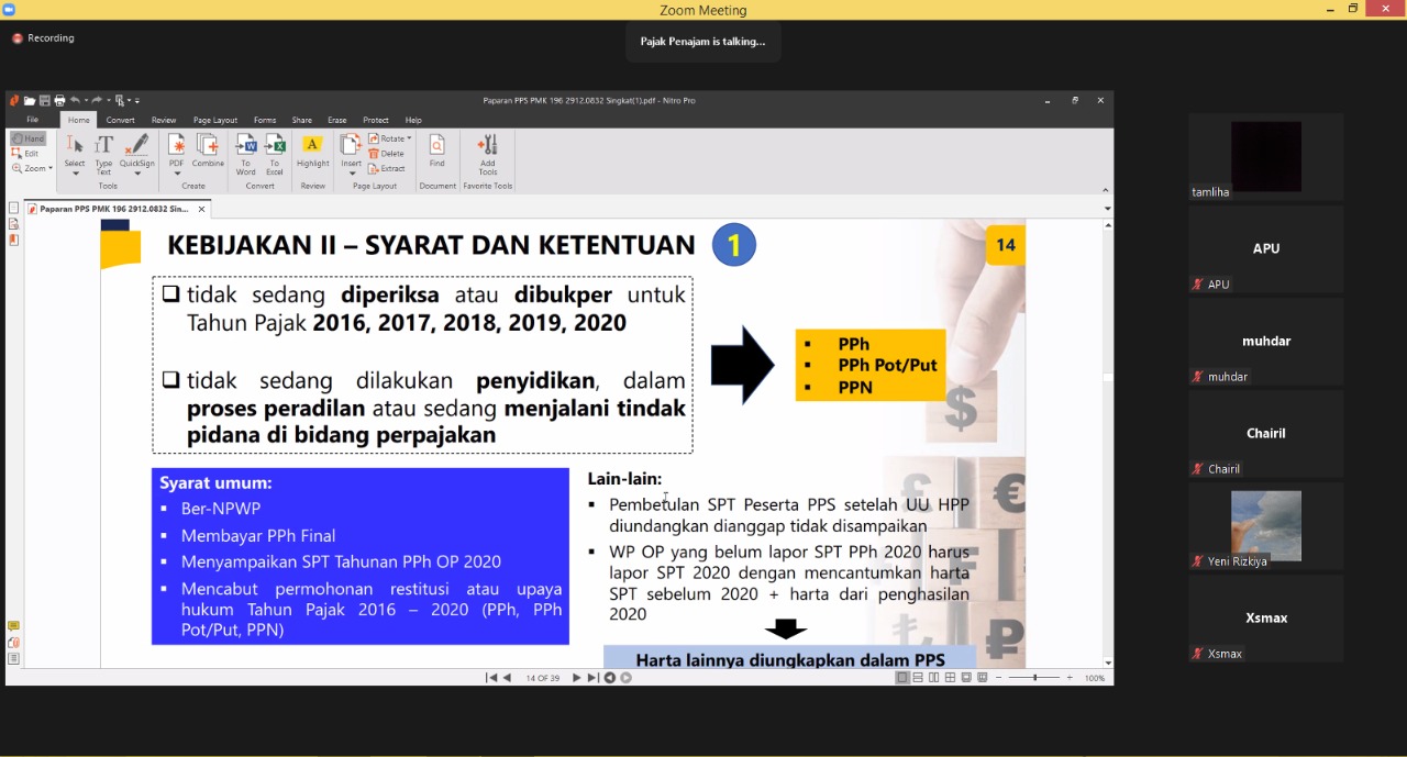 Kantor Pelayanan Pajak (KPP) Pratama Penajam menyelenggarakan Kelas Pajak mengenai Program Pengungkapan Sukarela (PPS) secara daring melalui aplikasi Zoom Cloud Meeting di Aula KPP Pratama Penajam (Rabu, 09/02).