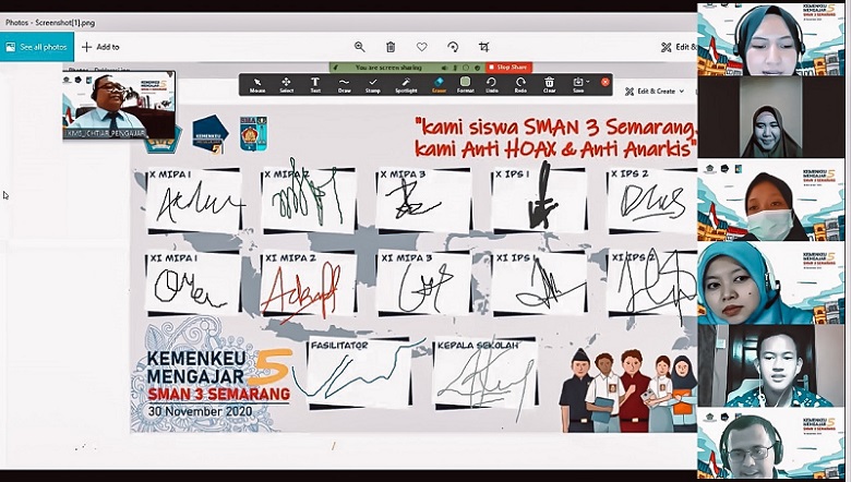 Pada kegiatan yang dilaksanakan secara sukarela oleh pegawai Kementerian Keuangan (Kemenkeu) ini, hadir Kepala Biro Komunikasi dan Layanan Informasi (KLI) Sekretariat Jenderal Kementerian Keuangan Rahayu Puspasari, yang sekaligus menjadi narasumber pada kegiatan bersama SMA Negeri 3 Semarang ini.