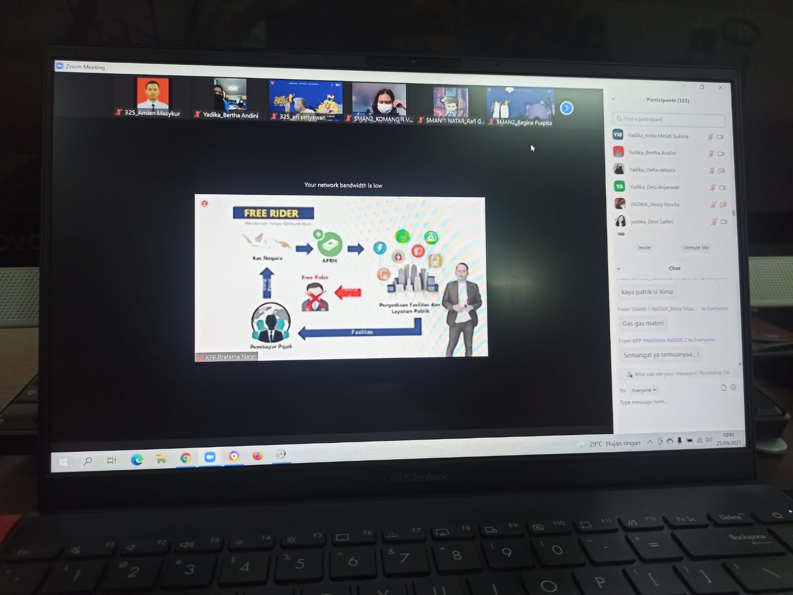 Kantor Pelayanan, Penyuluhan, dan Konsultasi Perpajakan (KP2KP) Pringsewu, KP2KP Kalianda bersama Kantor Pelayanan Pajak (KPP) Pratama Natar menyelenggarakan kegiatan Pajak Bertutur 2021 secara daring menggunakan Zoom Meeting di kantor KPP Pratama Natar, Lampung Selatan (Rabu, 25/8).