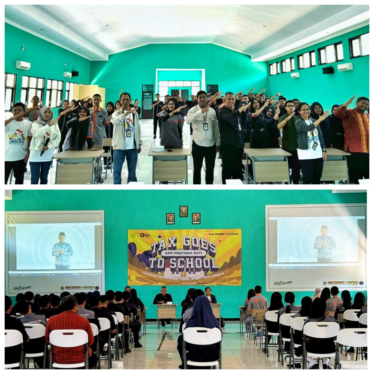 Edukasi pajak kepada para siswa sekolah kembali digelar Kantor Pelayanan Pajak (KPP) Pratama Pati bersama SMK Negeri I Cluwak dalam acara Tax Goes To School (Kamis, 15/8). Kegiatan ini diikuti oleh 50 siswa-siswi dengan tema “Generasi Muda Sadar Pajak, Wujud Bela Negara”.