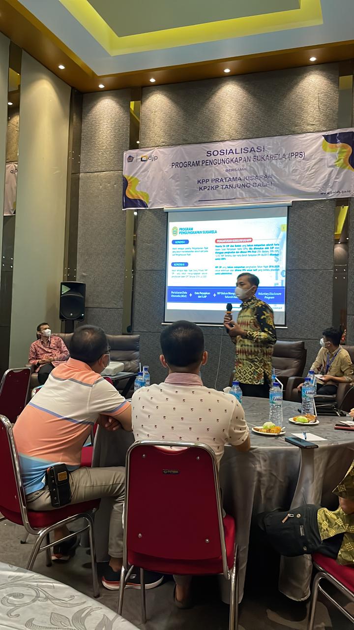 Acara dibuka oleh Kepala KPP Pratama Kisaran Maman Surahman dan materi disampaikan oleh Account Representative dan Tim Penyuluh Pajak KPP Pratama Kisaran. Tujuan dilaksanakannya kegiatan sosialisasi ini untuk meningkatkan pemahaman wajib pajak terkait PPS sehingga dapat memanfaatkannya sebelum berakhir pada 30 Juni 2022.