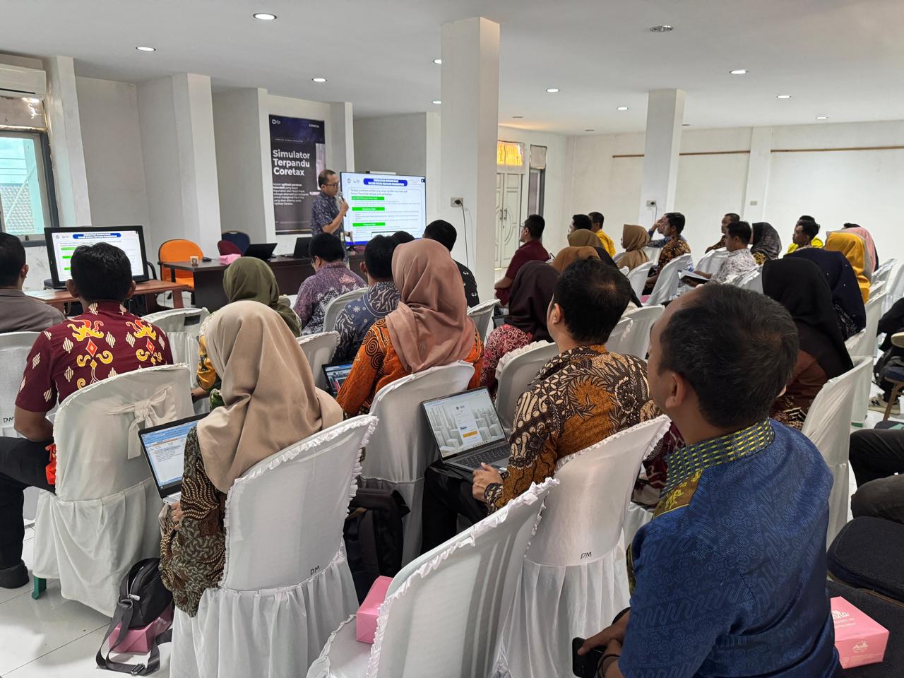 Acara dilanjutkan pemaparan materi serta simulasi dan praktik aplikasi, antara lain berupa materi perubahan data wajib pajak, deposit pajak, pembayaran pajak, faktur pajak, e-Bupot, Surat Pemberitahuan (SPT) Masa Pajak Penghasilan (PPh)/Pajak Pertambahan Nilai (PPN), dan SPT Tahunan. Selanjutnya diadakan diskusi dengan peserta mengenai pemaparan materi yang telah dipaparkan maupun jika ada kendala ketika melakukan simulasi.
