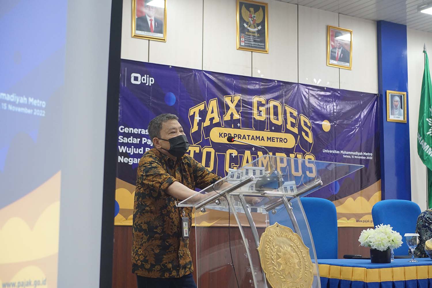 Kantor Pelayanan Pajak (KPP) Pratama Metro mengandeng Universitas Muhammadiyah Metro dalam gelaran acara Tax Goes To Campus yang diadakan oleh KPP Pratama Metro dan KP2KP Bandarjaya di Gedung Aula Universitas Muhammadiyah Metro Kota Metro (Selasa,15/11). Kegiatan ini diadakan dengan tema Generasi Sadar Pajak Muda Berkreasi Membangun Negeri.