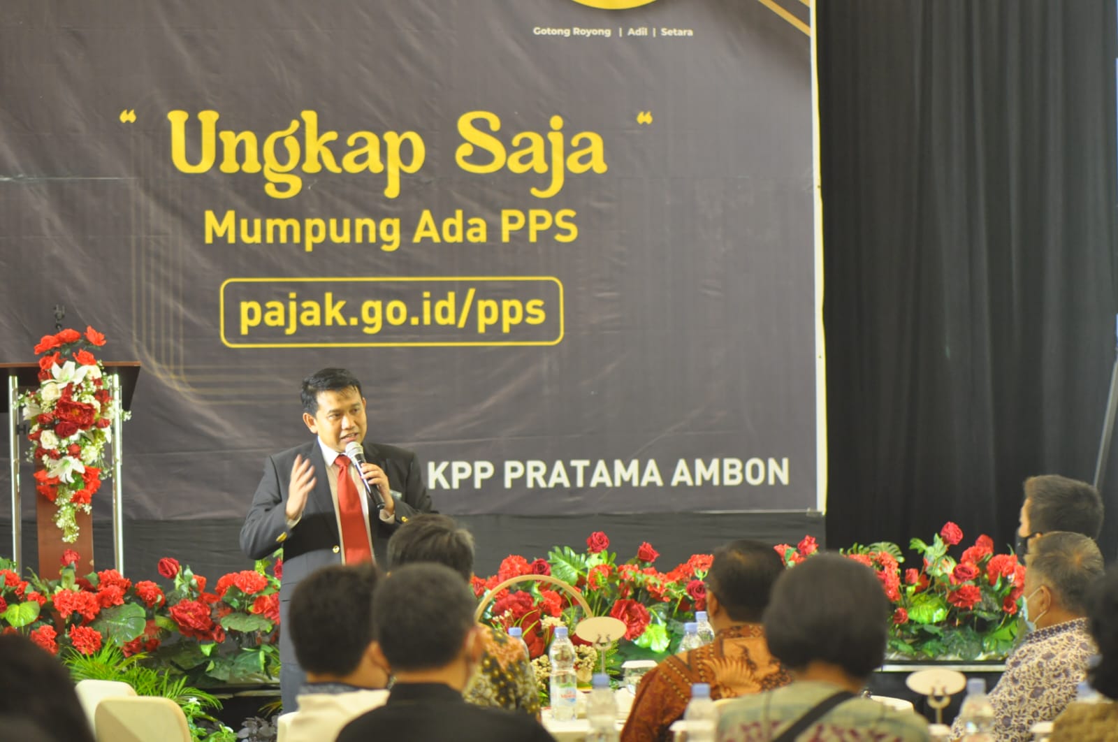 Dalam kesempatan ini, Kepala KPP Pratama Ambon Widi Pramono mengajak wajib pajak yang hadir untuk mengikuti PPS. Menurutnya, PPS adalah kesempatan yang diberikan kepada wajib pajak untuk mengungkapkan kewajiban perpajakan yang belum dipenuhi secara sukarela melalui pembayaran Pajak Penghasilan (PPh) berdasarkan pengungkapan harta.
