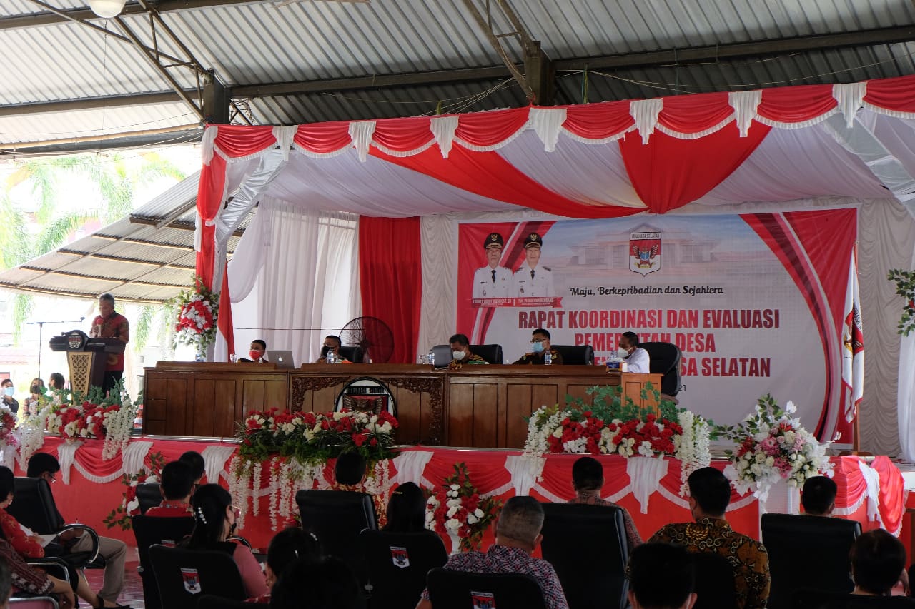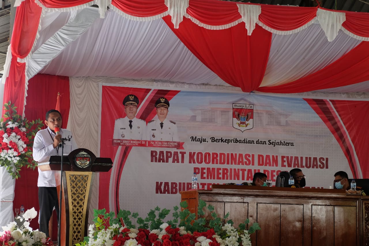 Rapat yang dihadiri ini adalah Rapat Koordinasi dan Evaluasi Camat dan Kepala Desa Kabupaten Minahasa Selatan Rapat dan diselenggarakan di aula Kantor Bupati Minahasa Selatan, Kabupaten Minahasa Selatan, Sulawesi Utara.