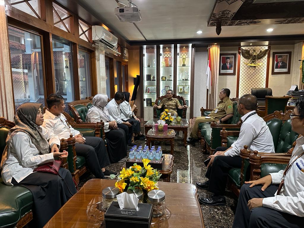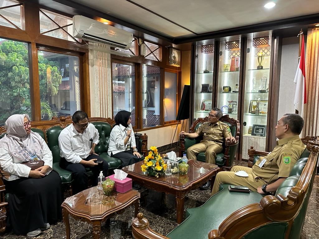 Kepala Kantor Pelayanan Pajak (KPP) Pratama Bantul Ida Ernawati mengunjungi Bupati Bantul H. Abdul Halim Muslih di Kantor Bupati Bantul Jalan Rudolf Wolter Monginsidi, Kurahan, Kecamatan Bantul, Kabupaten Bantul Daerah Istimewa Yogyakarta (Senin,19/6). Kunjungan dilakukan dalam rangka koordinasi dan kerja sama untuk mencapai target penerimaan pajak.