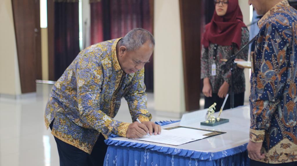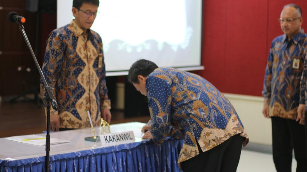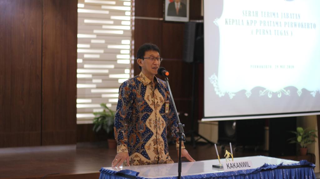 Kantor Wilayah DJP Jawa Tengah II menggelar Serah Terima Jabatan Kepala KPP Pratama Purwokerto dari Pejabat Lama Sugeng Haryanto kepada Pejabat baru Atmo yang akan bertugas sebagai Pelaksana Tugas (Plt.) di Aula Lantai II KPP Pratama Purwokerto (Rabu, 29/5).