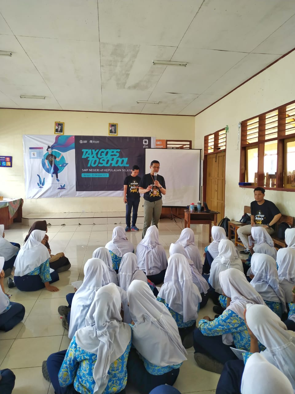 Kegiatan Tax Goes to School (TGTS) merupakan kegiatan rutin yang bertujuan mengenalkan pajak sejak dini kepada masyarakat, khususnya para pelajar usia sekolah. Tapi TGTS yang dilaksanakan Kantor Pelayanan, Penyuluhan, Dan Konsultasi Perpajakan (KP2KP) Benteng kali ini berbeda, sebab Kanwil DJP Sulselbartra turut membantu jalannya TGTS tahun ini (Kamis, 10/10). Acara TGTS berlangsung di Aula SMPN 3 Benteng, Kabupaten Kepulauan Selayar.