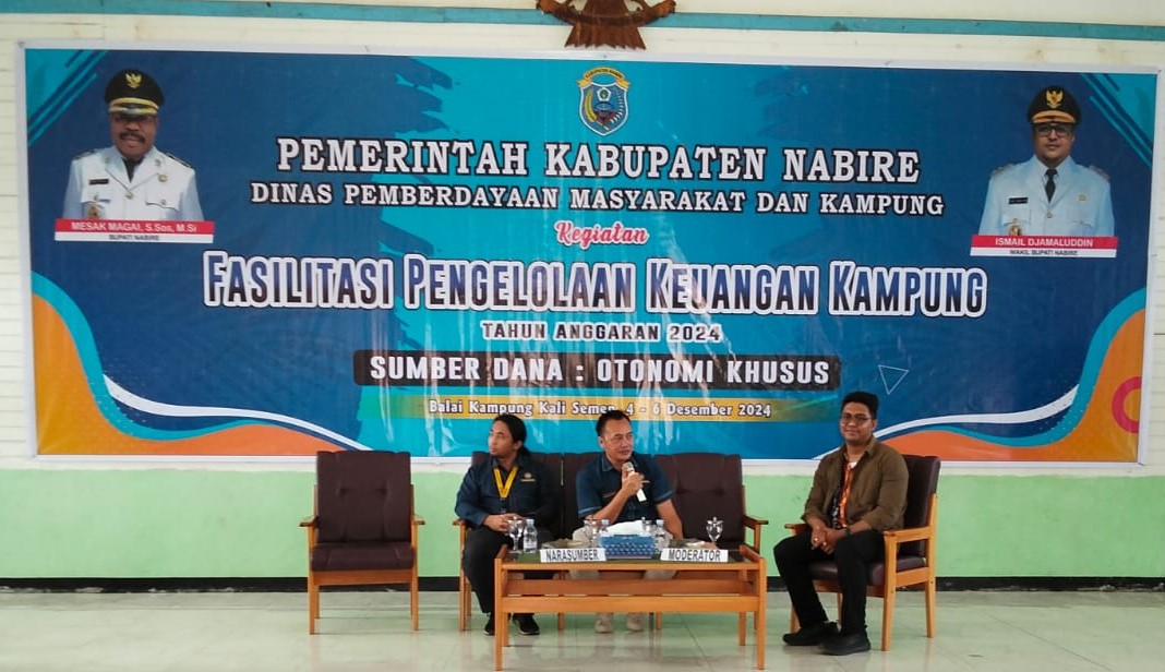 Kegiatan dibuka oleh Kepala DPMK Kabupaten Nabire, Pelimon Madai, yang menyampaikan bahwa pentingnya kegiatan ini agar setiap perangkat desa untuk meningkatkan pengelolaan dana desa dengan baik. Sambutan dilanjutkan oleh Bupati Kabupaten Nabire, Mesak Magai, yang menyampaikan tentang peran perangkat kampung dalam memajukan kampung melalui pengelolaan dana desa yang baik. ”Perangkat kampung memiliki peran strategis sebagai bagian dari pemerintahan dalam menyelenggarakan proses pembangunan kampung. Sebagai bagian dari pemerintah yang berhubungan langsung dengan masyarakat tentunya perangkat kampung lebih memahami kebutuhan yang diperlukan kampung,” ungkap Mesak.