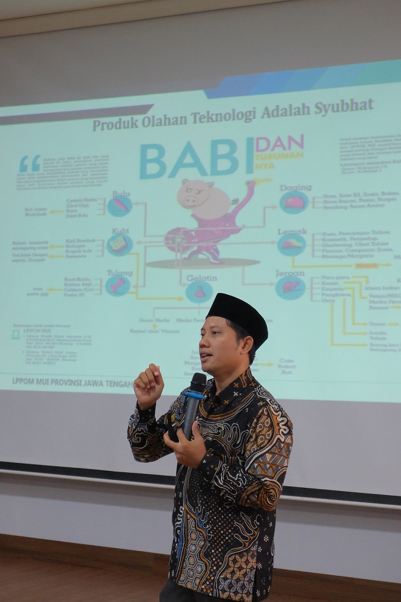 Muhammad Shofa Mughtanim selaku Wakil Direktur LPPOM MUI Jateng sekaligus narasumber dalam kegiatan BDS kali ini, menyampaikan bahwa saat ini permintaan pasar untuk produk-produk halal sangat besar. Halal menjadi issue yang sangat sensitif di Indonesia seiring dengan tren wisata halal yang mendunia. Menurut Pew Research Center (2011), populasi muslim di dunia pada tahun 2030 diperkirakan akan mencapai 2,2 miliar atau 30% dari populasi dunia. Sedangkan menurut muslimpopulation (2022), populasi muslim Indonesia sebesar 87,2% dari jumlah penduduk Indonesia. Proses sertifikasi halal mendorong UMKM untuk menerapkan sistem jaminan mutu dan kehalalan produk yang lebh baik. Dengan demikian, diharapkan dengan adanya kegiatan BDS ini dapat membantu UMKM dalam upaya meningkatkan kepercayaan dan persepsi konsumen serta membuka peluang pasar yang lebih luas.