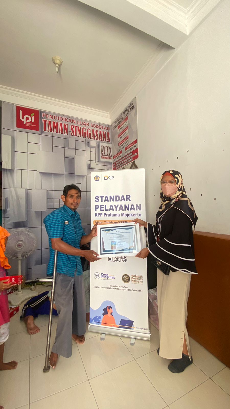 Salah satu stakeholder yang dikunjungi adalah Lembaga Pengembang Infaq Taman Singgasana yang berada di Kota Mojokerto. Saat ditemui Tim KPP Pratama Mojokerto, Ketua Lembaga Pengembang Infaq Taman Singgasana Mu’arip menyampaikan bahwa manfaat pajak harus diketahui dan dirasakan oleh semua lapisan masyarakat, termasuk yang memiliki kebutuhan khusus. Untuk itu, diperlukan inovasi sehingga akses layanan perpajakan dapat dijangkau oleh masyarakat yang memiliki kebutuhan khusus terutama saat pelayanan di KPP.