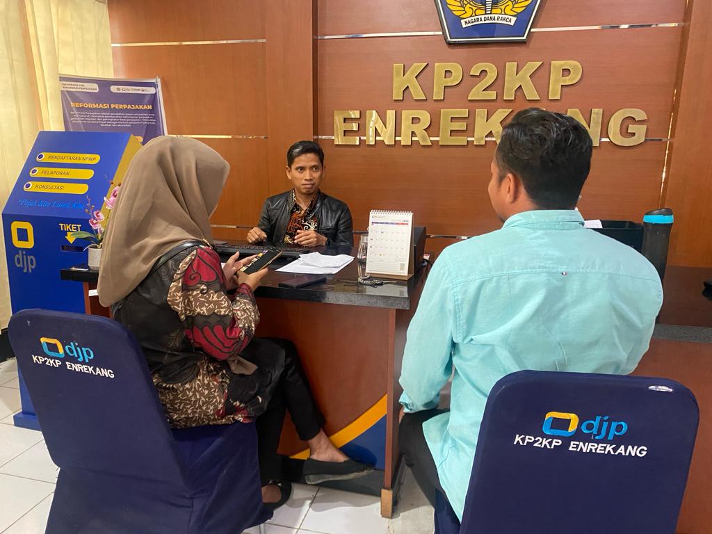 Ahmad Akbar selaku perwakilan Desa Mampu dan Rosnani selaku perwakilan seksi perencanaan Desa Salu Dewata meminta bertemu dengan Kepala KP2KP Enrekang. “Maaf pak, kalau bisa kami mau bertemu dengan Kepala Kantor Pajak Enrekang, karena kami mau konfirmasi terkait aturan PPN dibebaskan,” ujar Rosnani.
