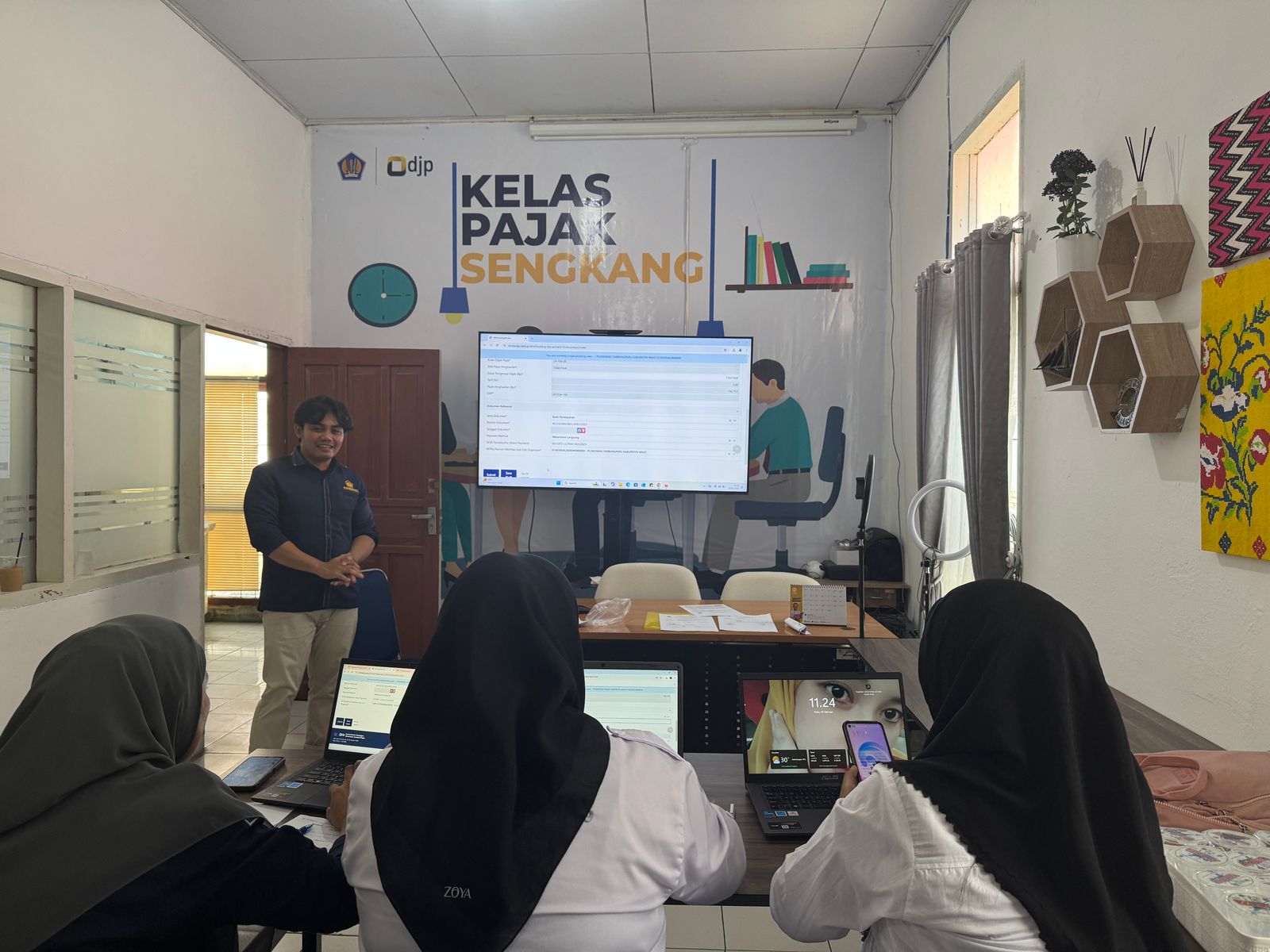 Setelah dipastikan kontak NPWP Desa dan PIC sesuai, langkah berikutnya adalah mengarahkan para Bendahara Desa ke ruang Kelas Pajak untuk diberikan asistensi dan bimbingan teknis penggunaan aplikasi oleh Muh. Azzahir.