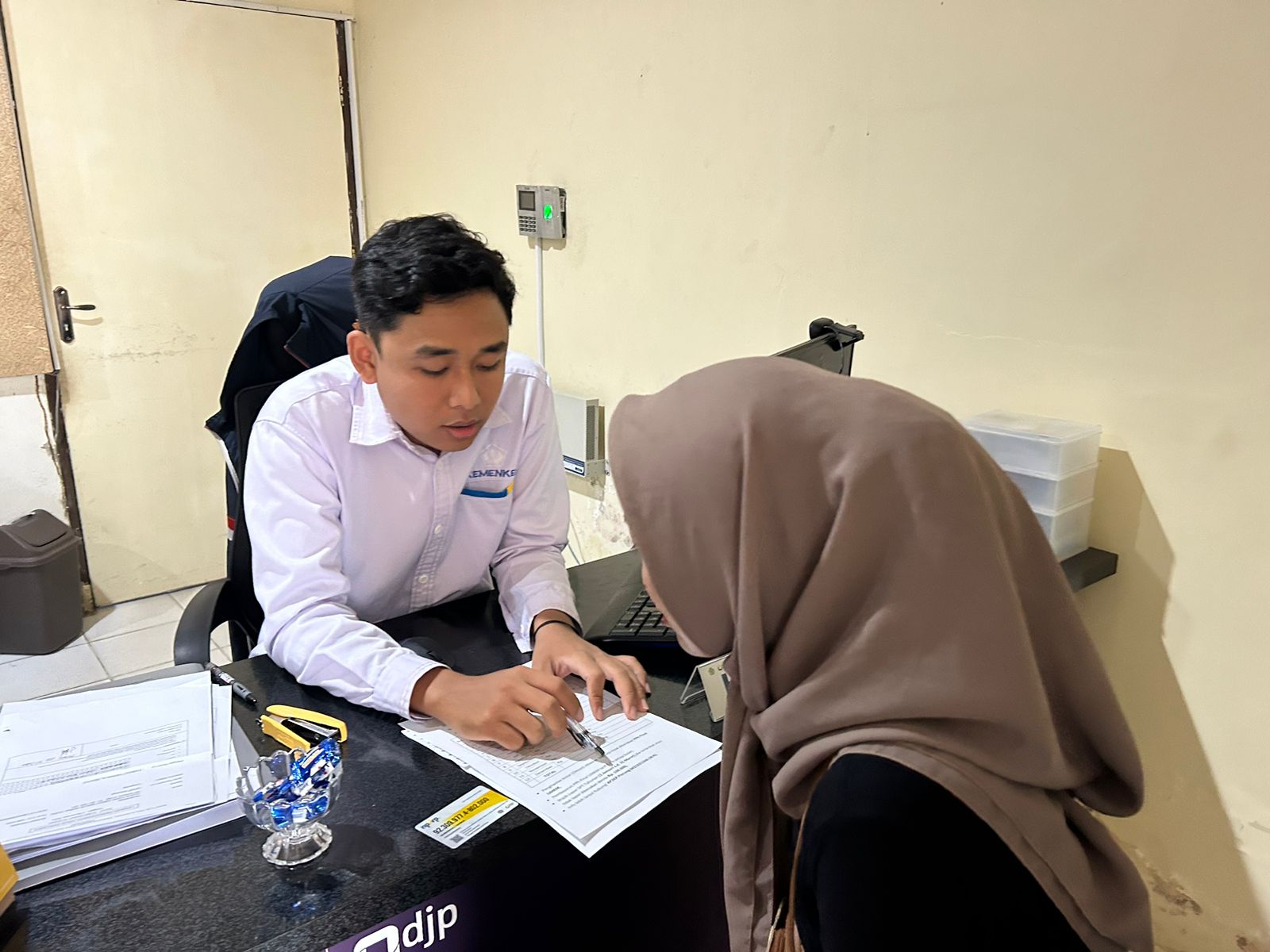 Kedatangan Sadariah disambut dengan ramah oleh Petugas KP2KP Pinrang Farkhat yang siap menjawab pertanyaan wajib pajak. “Selamat siang, Mas. Saya mau mencetak kartu Nomor Pokok Wajib Pajak (NPWP). Bagaimana kewajiban yang harus saya penuhi sebagai konten kreator? Rata-rata komisi yang saya terima $50 per bulan,” tanya Sadariah.