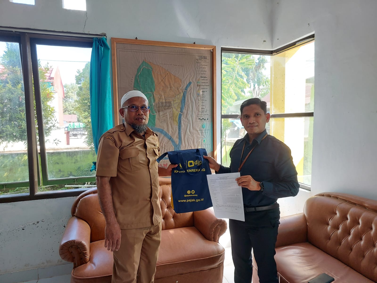 Kantor Pelayanan, Penyuluhan, dan Konsultasi Perpajakan (KP2KP) Enrekang mengadakan kunjungan kerja ke Kelurahan Juppandang di Jalan Pasar Baru Nomor 7, Enrekang (Selasa, 12/9). Kunjungan ini dilakukan dalam rangka koordinasi terkait pemadanan Nomor Induk Kependudukan (NIK) dan Nomor Pokok Wajib Pajak (NPWP) penduduk di wilayah Kelurahan Juppandang.