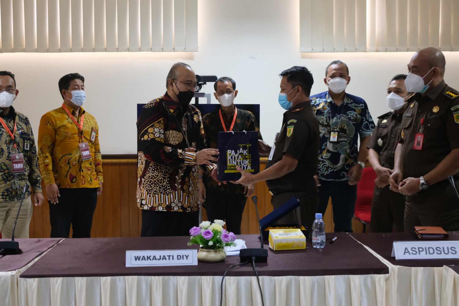 Di akhir acara Kepala Kanwil DJP DIY Yoyok Satiotomo memberikan plakat dan cendera mata kepada Wakil Kepala Kejaksaan Tinggi DIY Rudy Margono dan Aspidsus Sri Kuncoro. Tim Penyidik Kantor Wilayah DJP DIY bersama Wakil Kepala Kejaksaan Tinggi DIY Rudy Margono dan Aspidsus Sri Kuncoro serta perwakilan Kejaksaan Tinggi DIY lainnya yang hadir melakukan foto bersama.