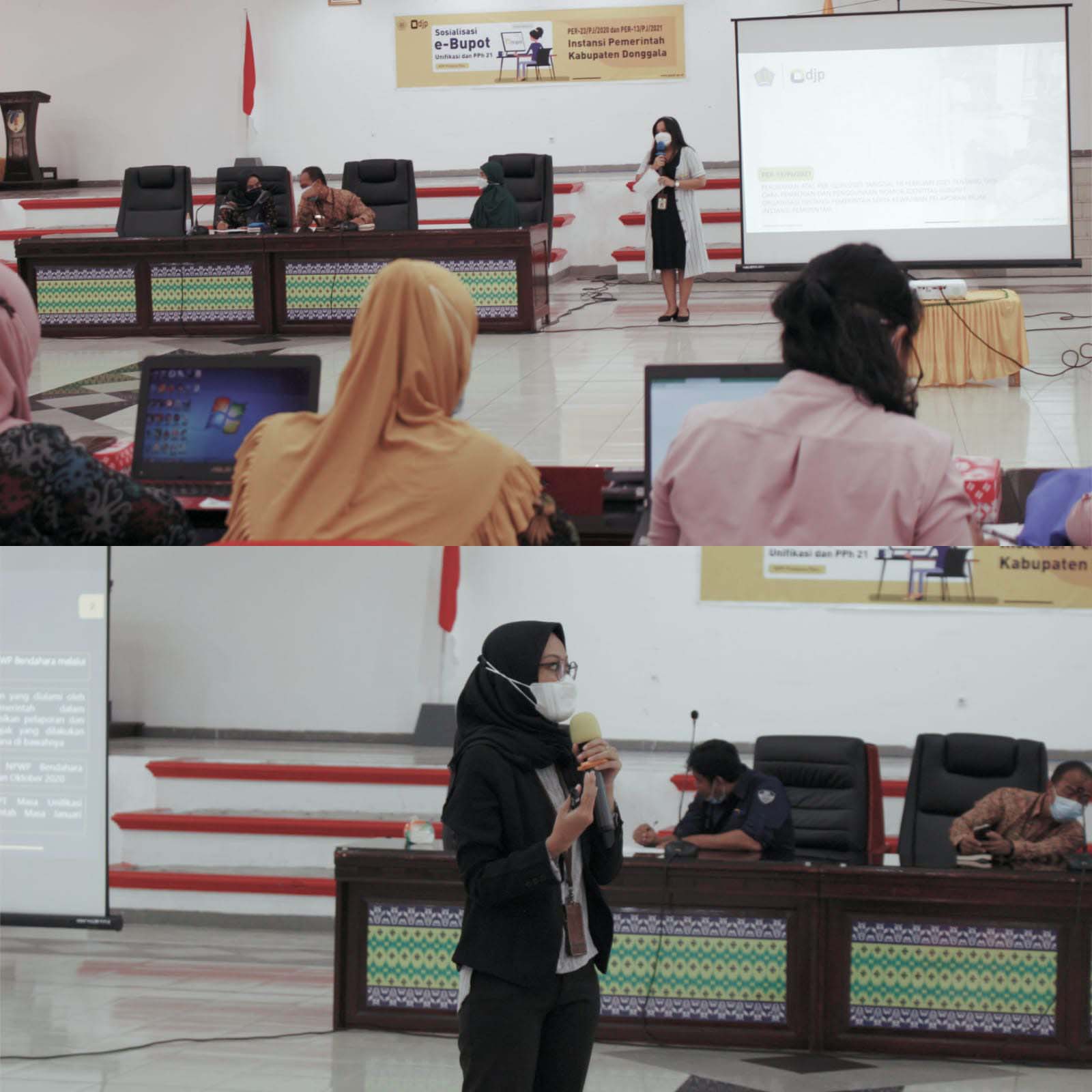 Kantor Pelayanan Penyuluhan dan Konsultasi Perpajakan (KP2KP) dan Kantor Pelayanan Pajak (KPP) Pratama Palu melakukan kegiatan bimbingan teknis terkait Elektronik Bukti Potong (e-Bupot) terhadap 54 Organisasi Perangkat Daerah (OPD) se-kabupaten Donggala di Aula Kasiromo Kantor Bupati Kabupaten Donggala, Sulawesi Tengah (Kamis, 7/10). Kegiatan ini bertujuan untuk meningkatkan kepatuhan kewajiban perpajakan bagi bendahara OPD Donggala.