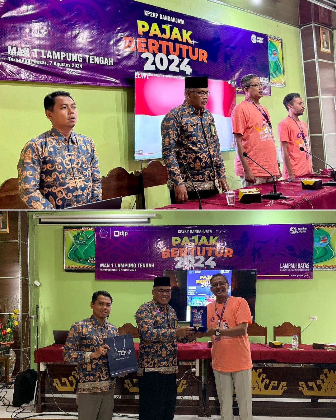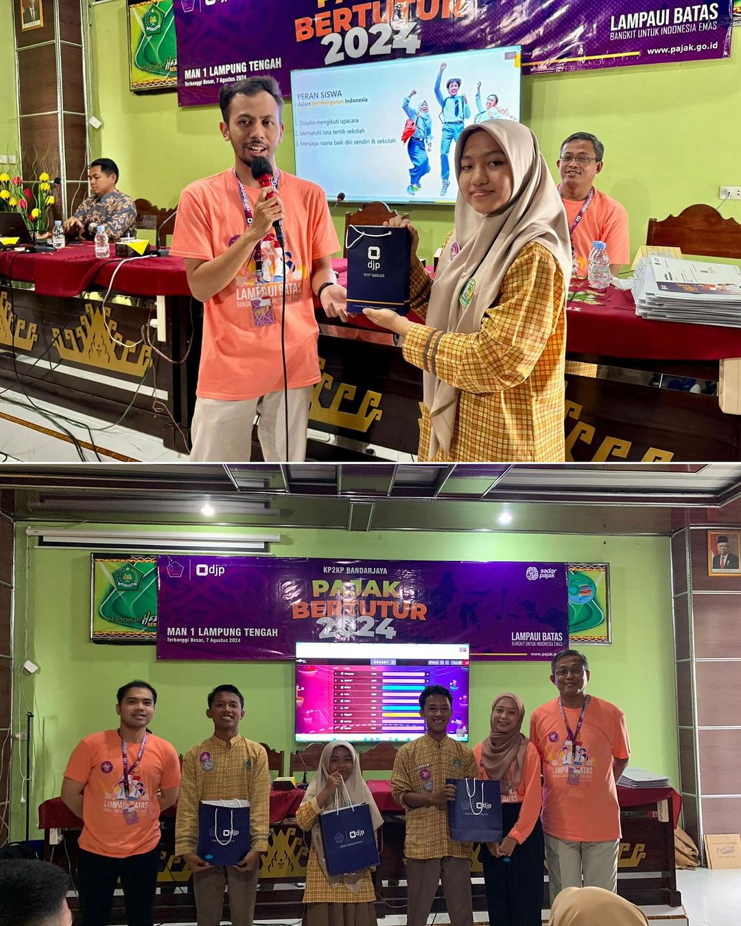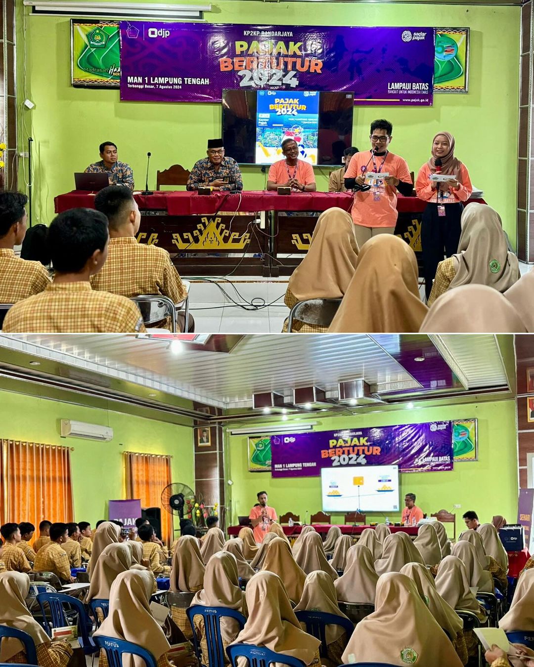 Kantor Pelayanan, Penyuluhan, dan Konsultasi Perpajakan (KP2KP) Bandarjaya menggelar kegiatan Pajak Bertutur 2024 yang bertempat di Aula MAN 1 Lampung Tengah, Jalan Lintas Sumatra, Kelurahan Terbanggi Besar, Kecamatan Terbanggi Besar, Kabupaten Lampung Tengah (Rabu 7/8). Kegiatan yang bertujuan meningkatkan kesadaran warga negara Indonesia terhadap fungsi dan manfaat perpajakan sejak dini.