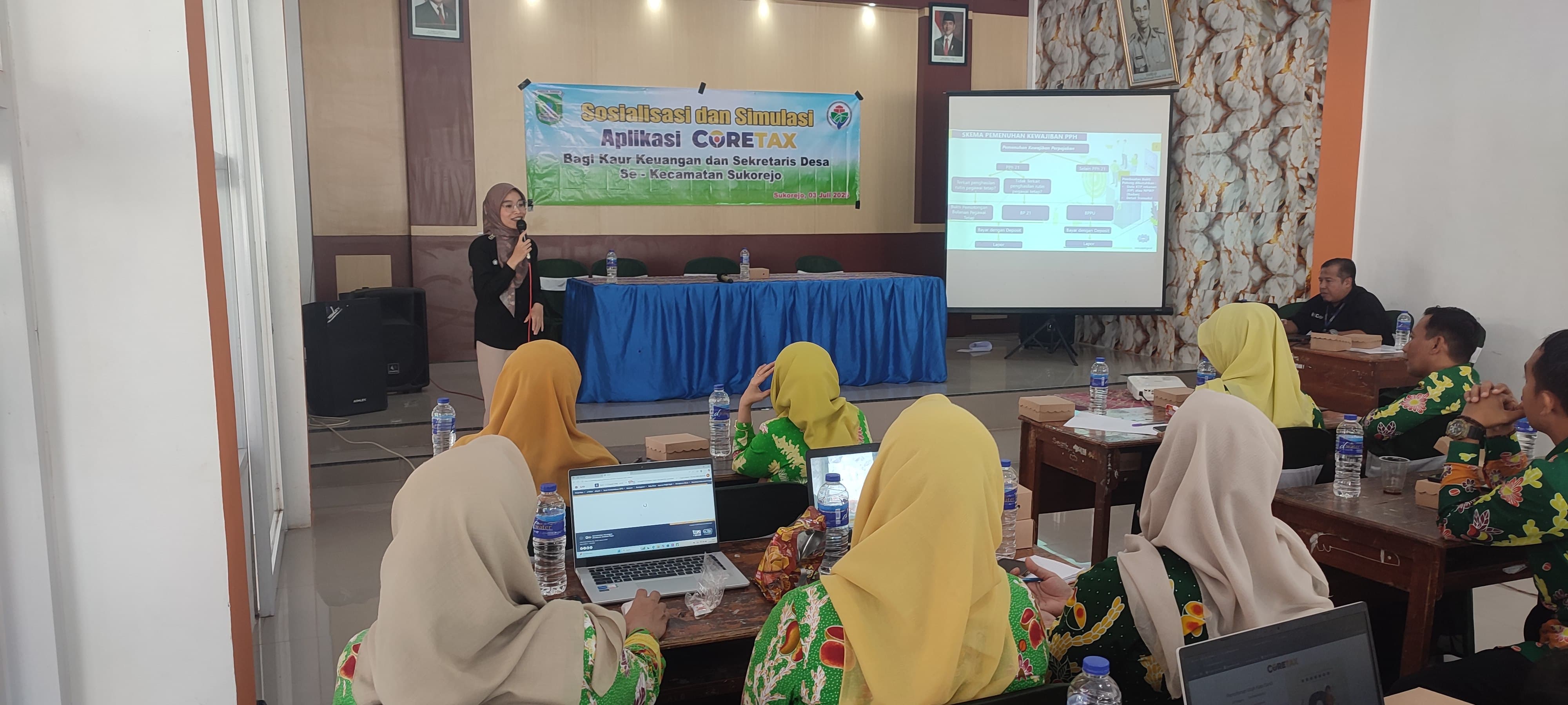 Kantor Pelayanan, Penyuluhan, dan Konsultasi Perpajakan (KP2KP) Bangil menggelar sosialisasi sistem perpajakan terbaru kepada para kepala urusan keuangan dan sekretaris desa se-Kecamatan Sukorejo, Kabupaten Pasuruan (Jumat, 4/7). Kegiatan ini berlangsung di Kantor Kecamatan Sukorejo dan dibuka langsung oleh Camat Sukorejo, Yudianto.