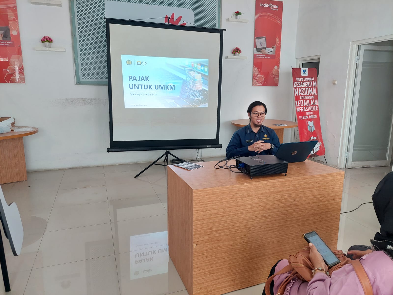 Kantor Pelayanan, Penyuluhan, dan Konsultasi Perpajakan (KP2KP) Banjarnegara memenuhi undangan Rumah BUMN Telkom Indonesia Banjarnegara pada Rabu (15/5) untuk menyampaikan Sosialisasi Kewajiban Perpajakan UMKM. Sosialisasi diadakan di Kantor Telkom Indonesia Banjarnegara.