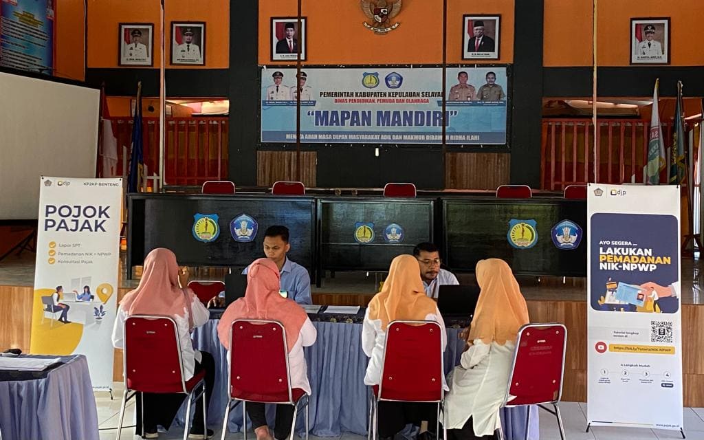 Kantor Pelayanan Penyuluhan dan Konsultasi Perpajakan (KP2KP) Benteng mengadakan Pojok Pajak di lingkungan Kantor Dinas Pendidikan Pemuda dan Olahraga Kabupaten Kepulauan Selayar (Rabu, 15/3). KP2KP Benteng membuka pojok pajak untuk memberikan asistensi Pemadanan Nomor Induk Kependudukan (NIK) sebagai Nomor Pokok Wajib Pajak (NPWP) dan Pelaporan Surat Pemberitahuan (SPT) Tahunan kepada para Wajib Pajak Aparatur Sipil Negara (ASN).