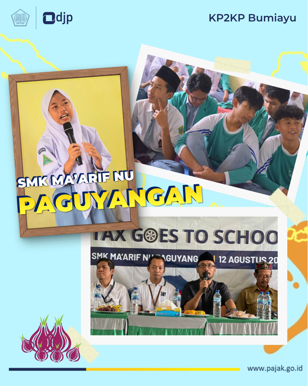 Kantor Penyuluhan, Pelayanan, dan Konsultasi Perpajakan (KP2KP) Bumiayu menyelenggarakan kegiatan tax goes to school (TGTS) bersama SMK Ma'arif NU Paguyangan di Kab. Brebes (Selasa, 12/8).