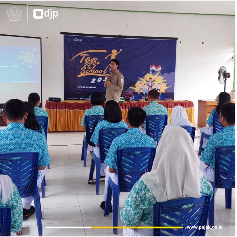 Kantor Pelayanan Penyuluhan dan Konsultasi Perpajakan (KP2KP) Bungku bersama dengan Sekolah Menengah Atas (SMA) Negeri 1 Petasia menyelenggarakan kegiatan Tax Goes To School (TGTS) secara luring di Aula SMA Negeri 1 Petasia, kabupaten Morowali Utara (Kamis, 16/9).