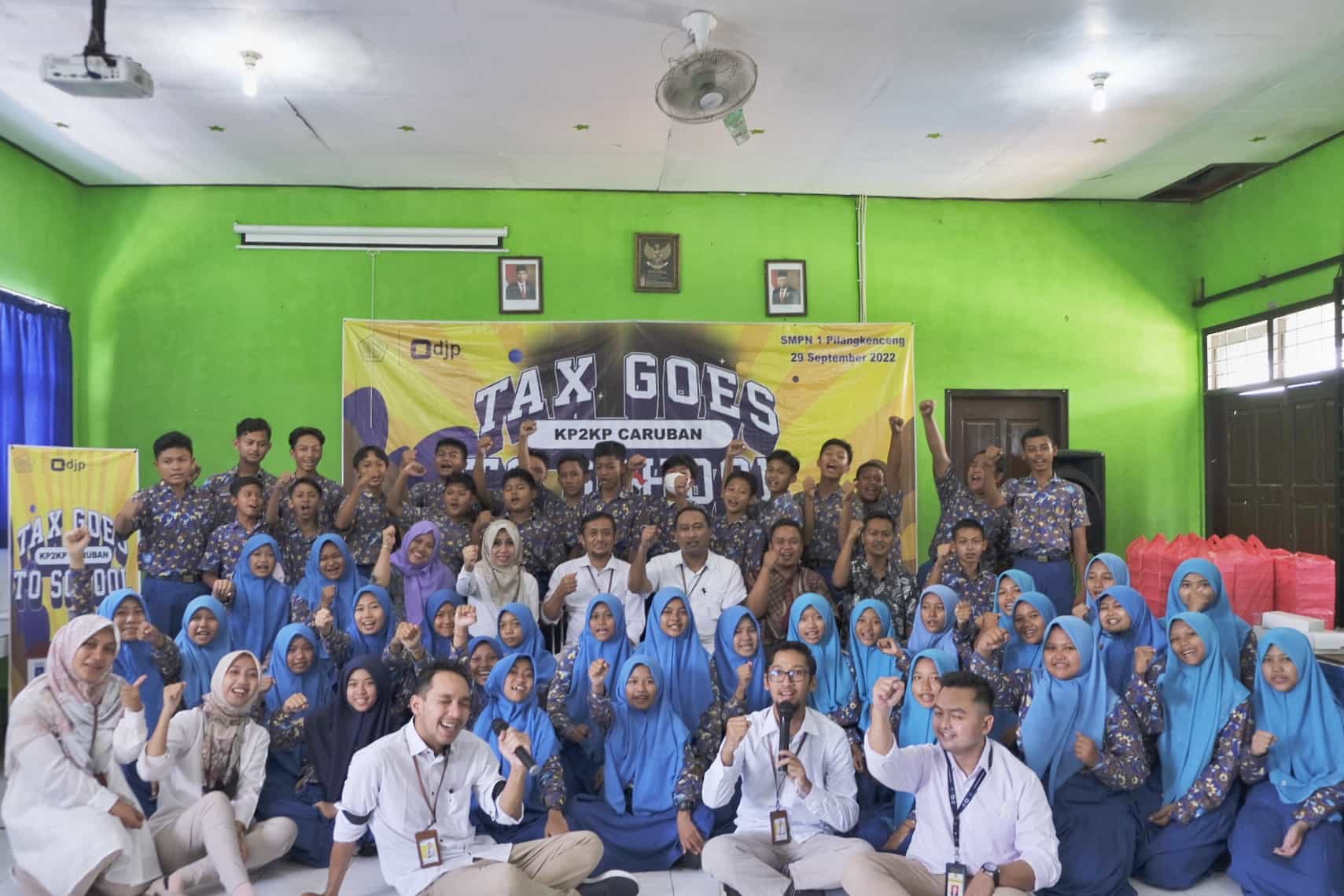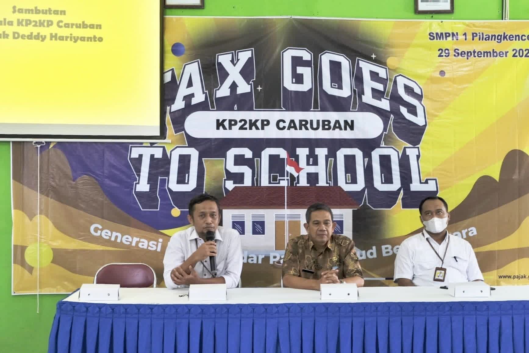 Kantor Pelayanan, Penyuluhan, dan Konsultasi Perpajakan (KP2KP) Caruban bersama Sekolah Menengah Pertama Negeri (SMPN) 1 Pilangkenceng mengadakan acara Tax Goes To School (TGTS) 2022 di Aula SMPN 1 Pilangkenceng (Kamis, 29/9). Mengusung tema "Generasi Muda Sadar Pajak, Wujud Bela Negara”, acara diikuti oleh 49 siswa-siswi SMPN 1 Balerejo.