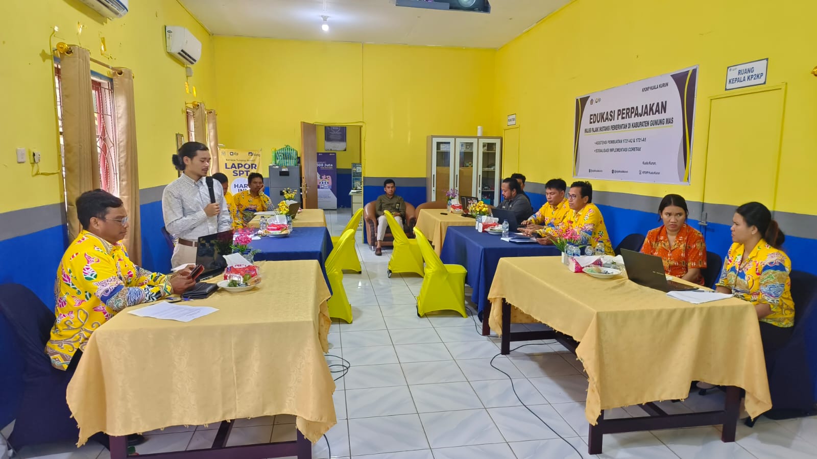 Kantor Pelayanan, Penyuluhan, dan Konsultasi Perpajakan (KP2KP) Kuala Kurun bersama Kantor Pelayanan Pajak (KPP) Pratama Palangkaraya mengadakan edukasi perpajakan mengenai tata cara penggunaan sistem Coretax DJP kepada lima Instansi Pemerintah Desa di wilayah Kecamatan Mihing Raya dan enam di wilayah Kecamatan Sepang, Kabupaten Gunung Mas (Kamis, 12/6). Kegiatan yang dilaksanakan di Ruang Rapat KP2KP Kuala Kurun ini bertujuan untuk meningkatkan pemahaman serta kepatuhan perpajakan Instansi Pemerintah Desa.