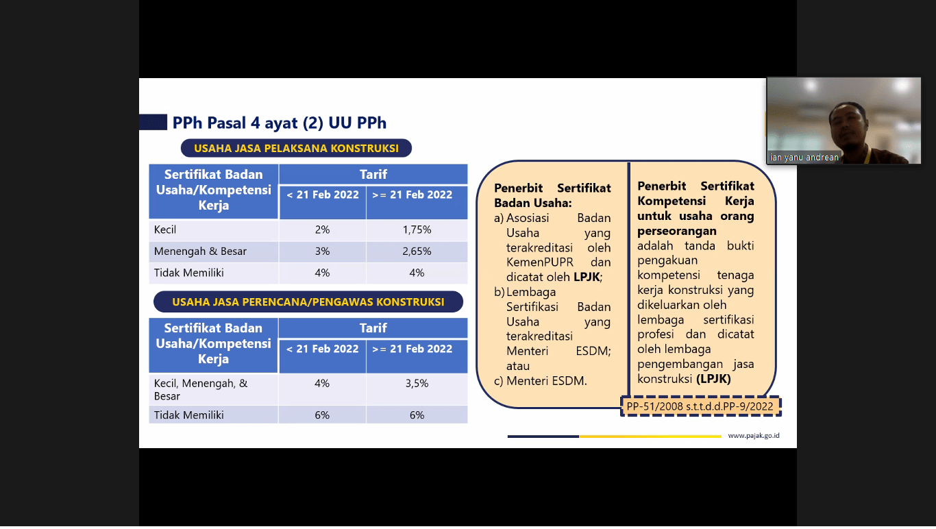 Acara sosialisasi ini dilaksanakan secara daring melalui aplikasi zoom meeting. Ian Yanu Andrean selaku Penyuluh di Kantor Pelayanan Pajak (KPP) Pratama Palopo menjadi pembawa materi UU HPP dalam kegiatan sosialisasi kali ini. Sosialisasi UU HPP ini gencar diselenggarakan untuk memberikan update mengenai peraturan pajak terbaru, sehingga stakeholder dapat menjalankan kewajiban perpajakan dengan baik sesuai peraturan pajak yang berlaku.