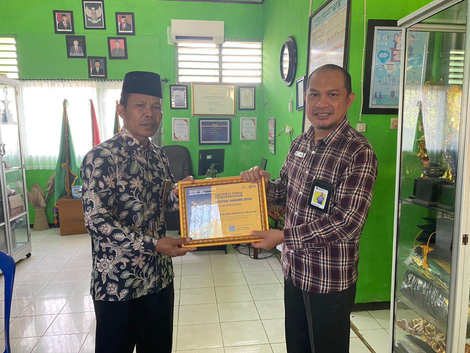 Pemberian apresiasi ini dilaksanakan atas suksesnya acara Tax Goes To School (TGTS) 2024 yang diselenggarakan pada bulan Juni 2024 di MTsN 1 Bengkulu Selatan. Pemberian apresiasi disampaikan langsung oleh Kepala KP2KP Manna, Muhammad Halik Amin kepada Kepala MTSN 1 Bengkulu Selatan Yulius.