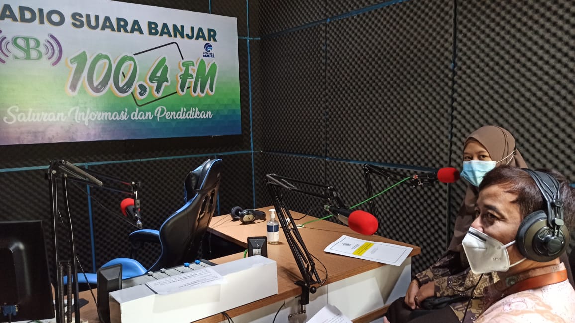 Kepala Kantor Pelayanan, Penyuluhan dan Konsultasi Perpajakan (KP2KP) Martapura Heri Sukoco didampingi salah satu staf penyuluh Dhea Umaya kembali menyapa para pendengar radio melalui gelar wicara (talk show) di studio Radio Suara Banjar (Selasa, 16/2).