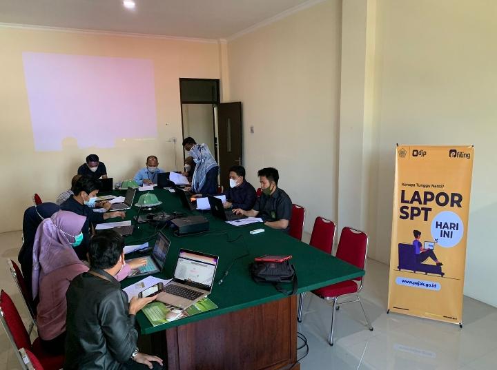 Kantor Pelayanan, Penyuluhan, dan Konsultasi Perpajakan (KP2KP) Masamba memberikan asistensi pelaporan SPT Tahunan untuk tahun pajak 2021 di Gedung Pengadilan Negeri Masamba (Rabu, 16/2).