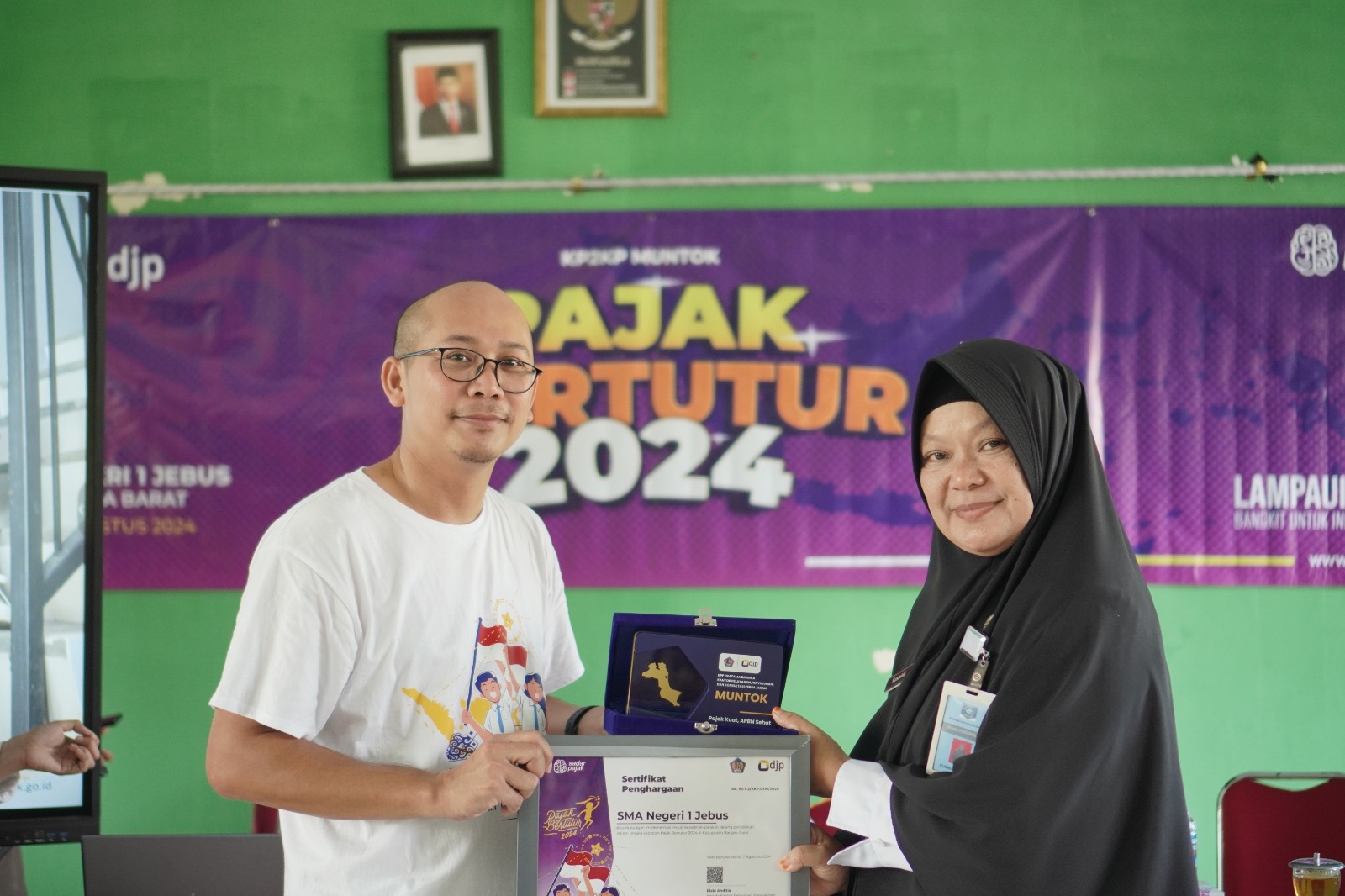 Kantor Pelayanan, Penyuluhan, dan Konsultasi Perpajakan Muntok (KP2KP Muntok) mengadakan sosialisasi pajak di SMA Negeri 1 Jebus (Rabu, 7/8). Acara ini bertujuan untuk memberikan pemahaman mendalam tentang perpajakan kepada siswa, sebagai bagian dari upaya untuk meningkatkan kesadaran pajak di kalangan generasi muda.