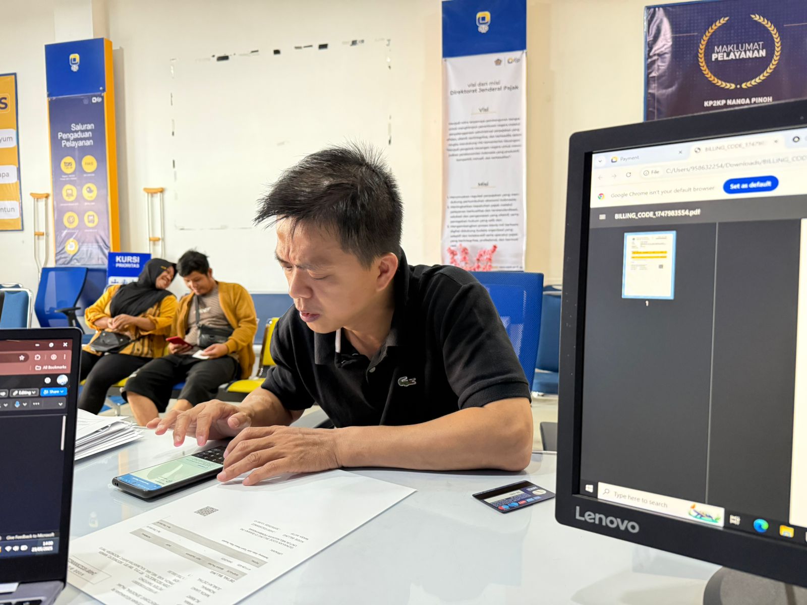 “Pagi Pak, seperti biasa mau bayar pajak bulan Mei,” ucap wajib pajak kepada petugas penyuluhan. Diketahui wajib pajak rutin datang ke kantor pajak setiap bulan untuk membayar pajak Usaha Mikro Kecil dan Menengah (UMKM). Petugas penyuluhan pun kemudian membuatkan kode billing wajib pajak.