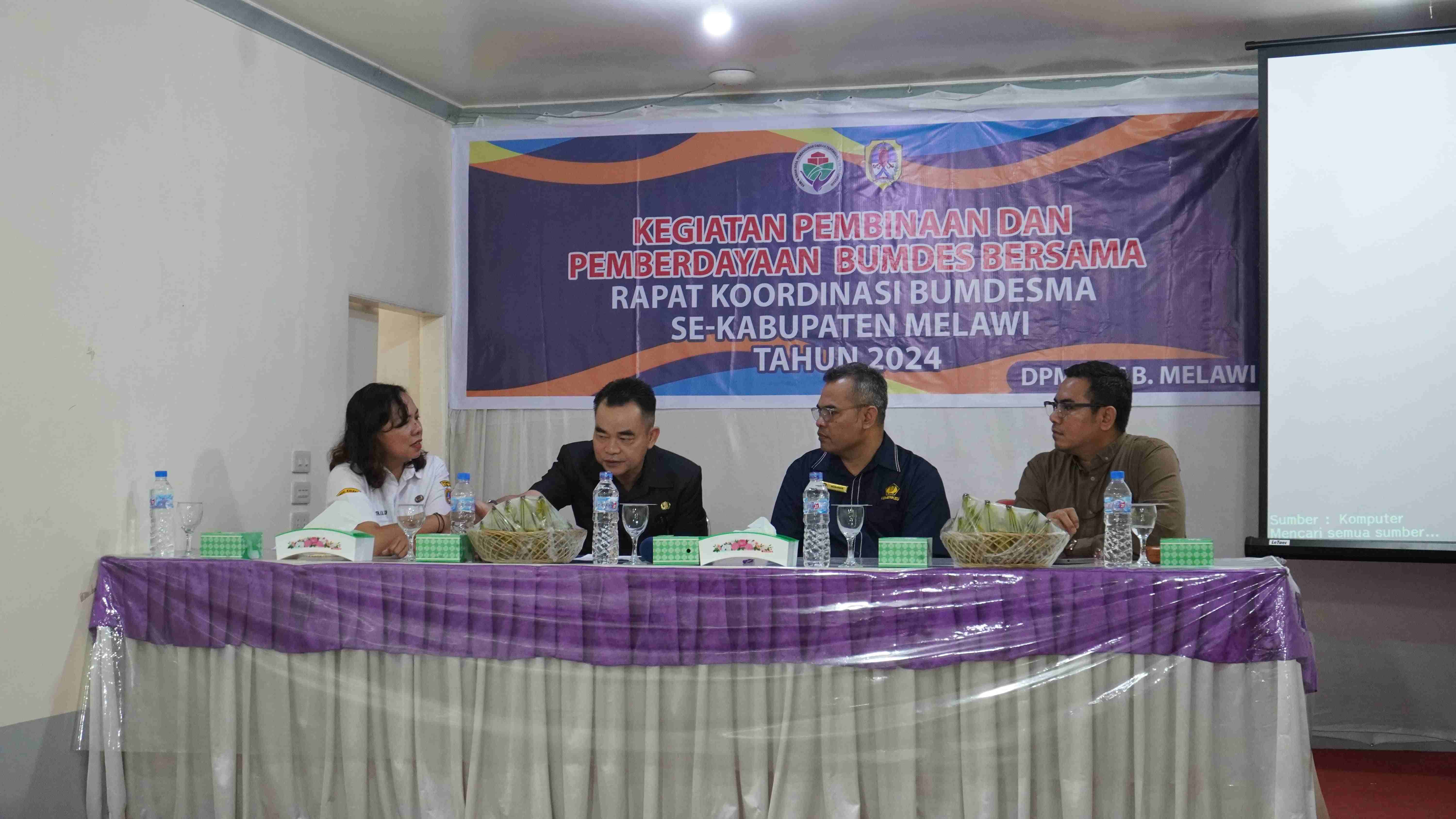 Kepala Kantor Pelayanan, Penyuluhan, dan Konsultasi Perpajakan (KP2KP) Nanga Pinoh bersama dengan dua orang pelaksana melakukan rapat koordinasi bersama dengan seluruh Pengurus Badan Usaha Milik Desa Bersama (Bumdesma) Kabupaten Melawi di ruang aula hotel Rajawali, Kecamatan Nanga Pinoh, Kabupaten Melawi (Rabu, 26/6).