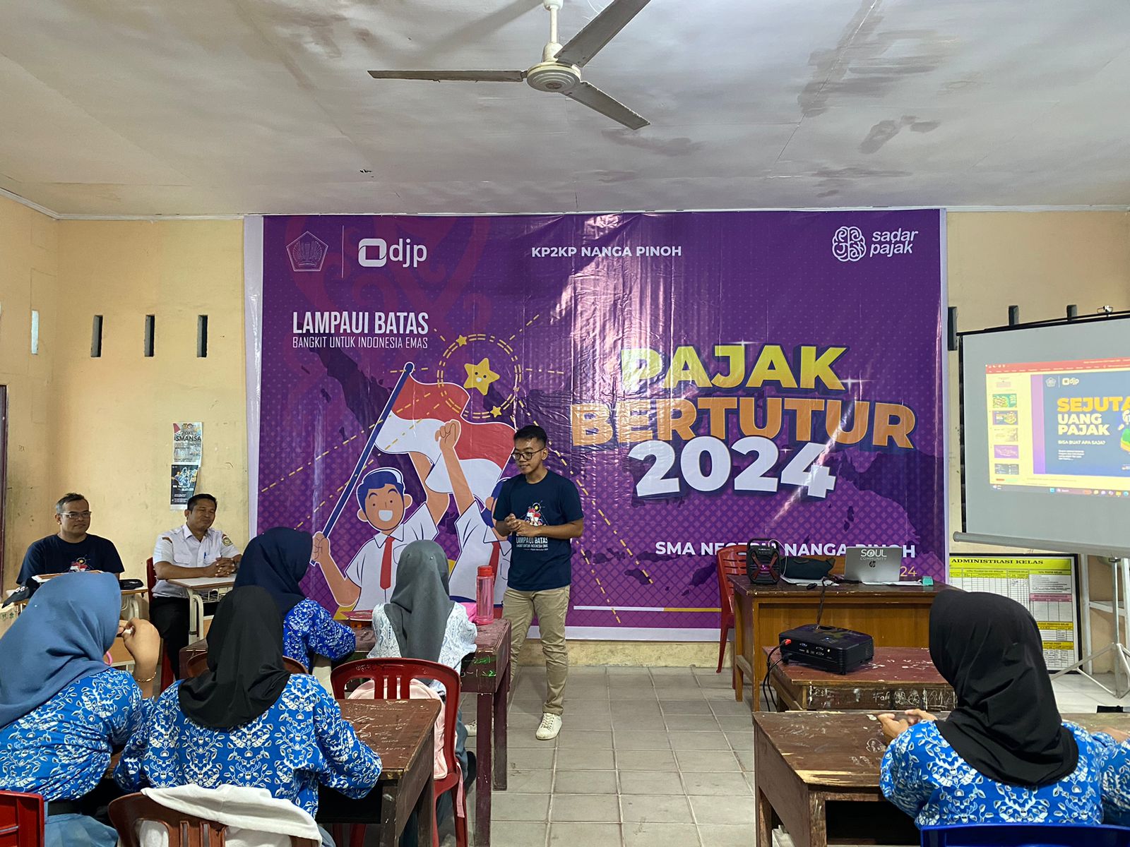 Kantor Pelayanan, Penyuluhan, dan Konsultasi Perpajakan (KP2KP) Nanga Pinoh mengadakan kegiatan pajak bertutur di Sekolah Menengah Atas (SMAN) 1 Nanga Pinoh, Kabupaten Melawi (Rabu, 7/8). Kegiatan ini merupakan kegiatan rutin satu tahun sekali yang diadakan oleh seluruh kantor pajak di Indonesia.