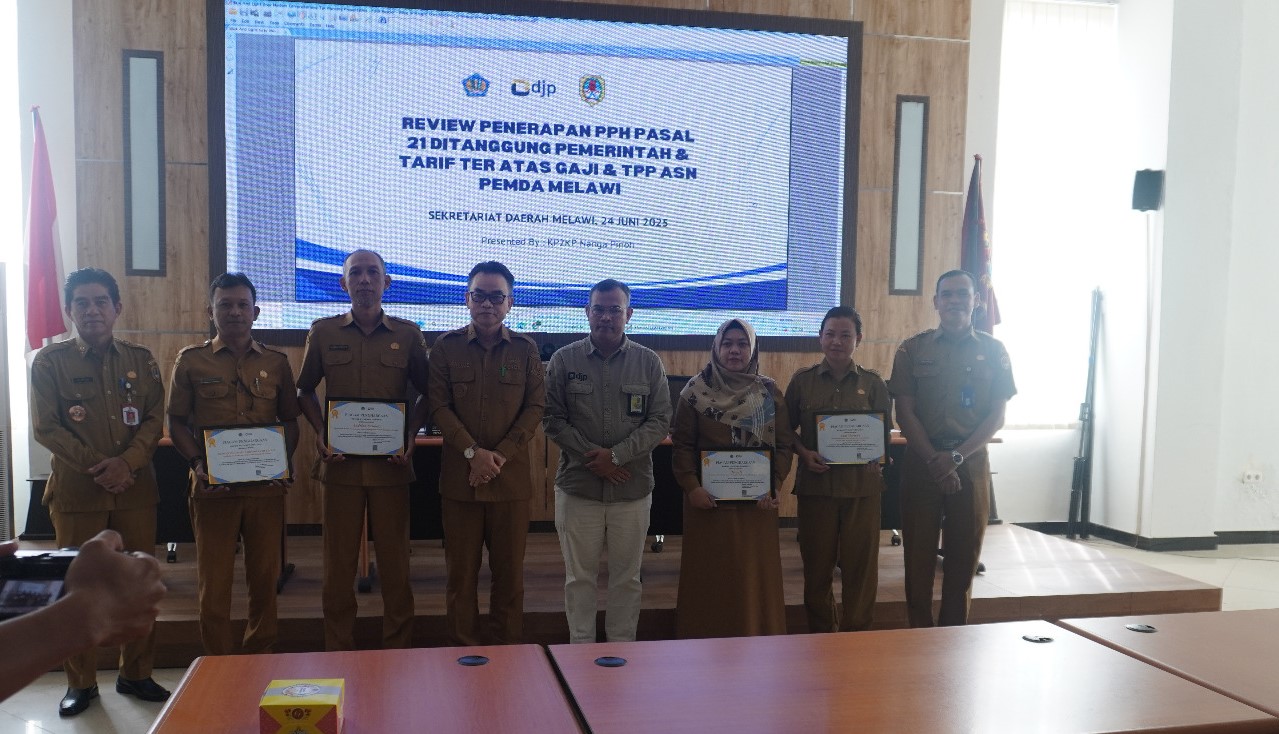 Kepala Kantor Pelayanan, Penyuluhan, dan Konsultasi Perpajakan (KP2KP) Nanga Pinoh, Munawar Kholil, melaksanakan sosialisasi terkait penerapan pajak penghasilan (PPh) 21 ditanggung pemerintah dan tarif efektif rata-rata (TER) atas gaji & TTP ASN di wilayah Kabupaten Melawi di Kantor Pendopo Bupati Nanga Pinoh, Kabupaten Melawi (Selasa, 24/6).