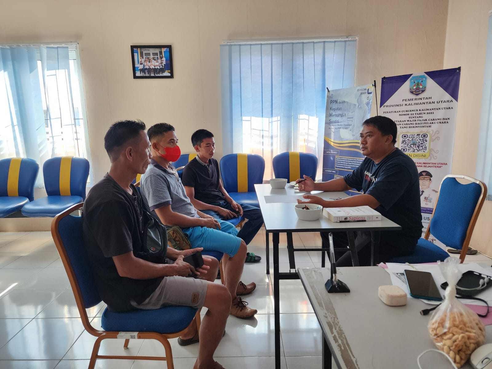 Tiga orang perwakilan dari Desa Tantalujuk, Kecamatan Lumbis Ogong, Kabupaten Nunukan mendatangi Kantor Pelayanan, Penyuluhan, dan Konsultasi Perpajakan (KP2KP) Nunukan di Kab. Nunukan (Jumat, 4/11).