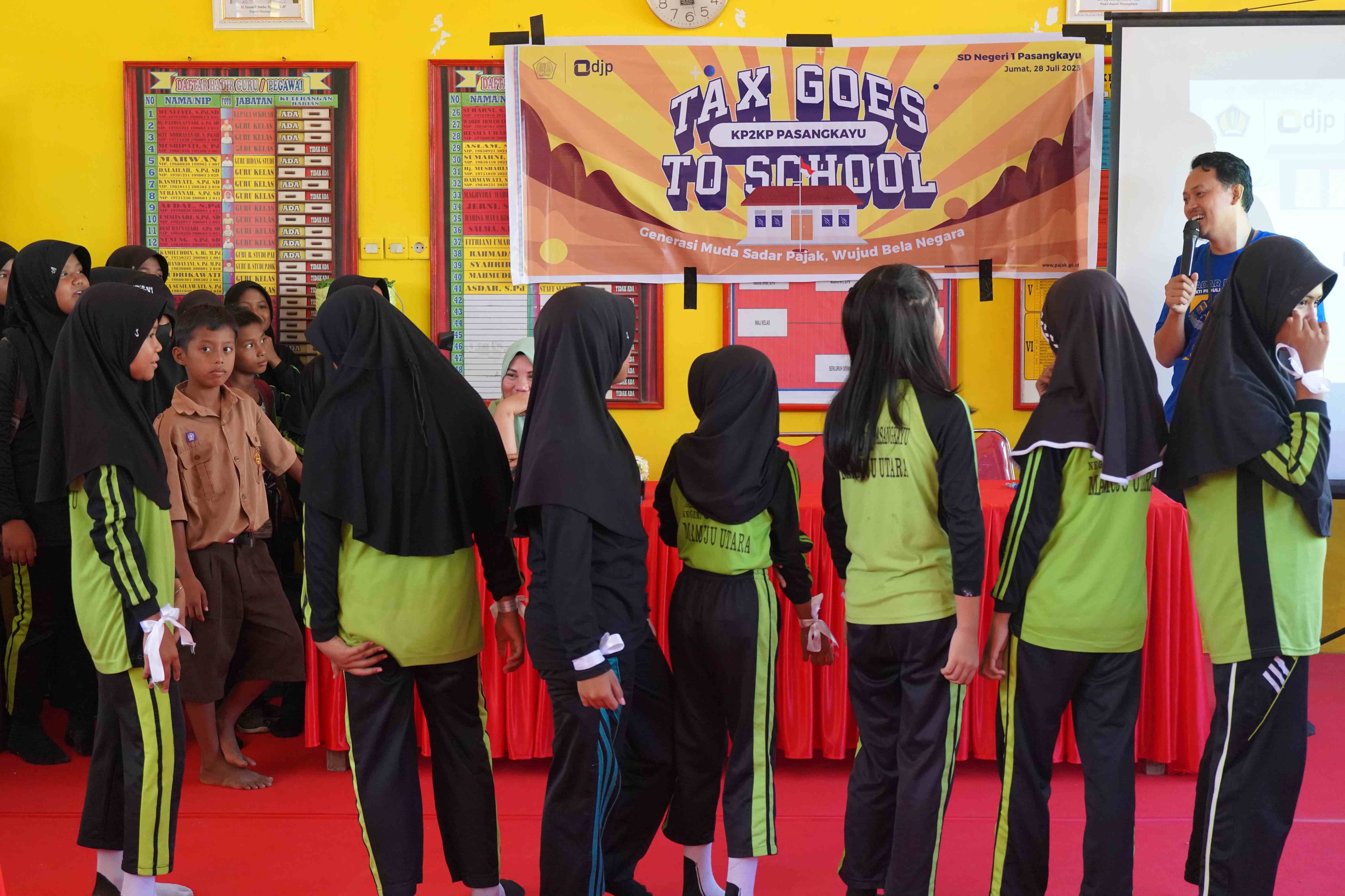 Kantor Pelayanan, Penyuluhan, dan Konsultasi Perpajakan (KP2KP) Pasangkayu menyelenggarakan kegiatan penyuluhan Tax Goes To School (TGTS) untuk siswa tingkat Sekolah Dasar. Kegiatan ini dilaksanakan di ruang kelas Sekolah Dasar Negeri (SDN) 1 Pasangkayu, Kab. Pasangkayu (Jumat, 28/7).