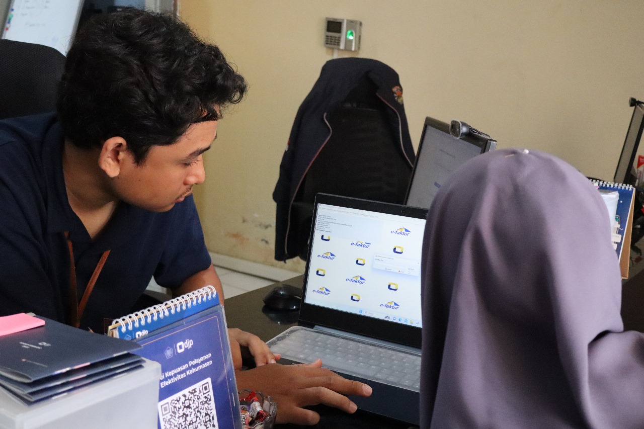 Kantor Pelayanan, Penyuluhan, dan Konsultasi Perpajakan (KP2KP) Pinrang memberikan asistensi pembaharuan aplikasi e-Faktur kepada wajib pajak yang telah dikukuhkan menjadi Pengusaha Kena Pajak (PKP) di Tempat Pelayanan Terpadu (TPT) KP2KP Pinrang (Kamis, 15/8). Beberapa wajib pajak datang karena aplikasi e-Faktur 3.2 yang sebelumnya sudah ter-install tidak bisa lagi digunakan.