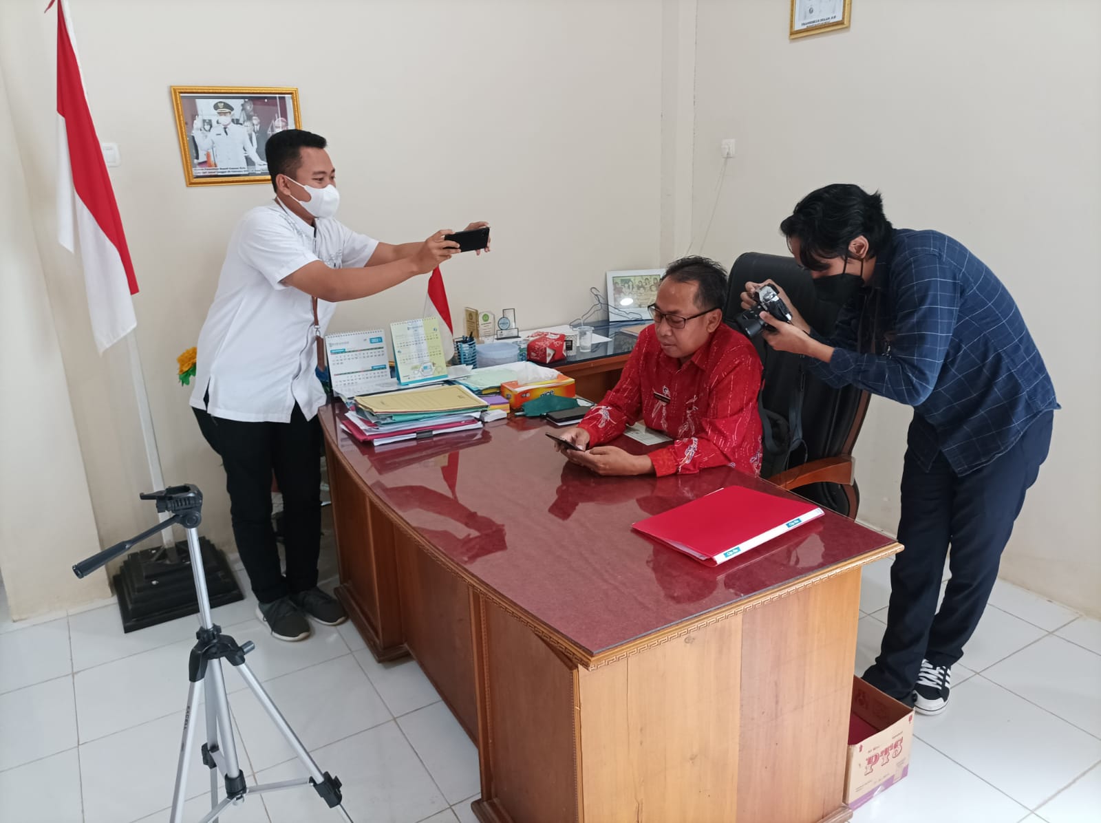 Kepala Kantor KP2KP Putussibau juga ditemani oleh 3 pelaksana dalam kunjungan ini. Proses pengambilan video berlangsung selama 45 menit. Di akhir kunjungan, Kepala KP2KP Putussibau menyampaikan kepada Kepala Disdikbud bahwa mereka sanggup membantu jika ada kesulitan dalam pelaporan SPT Tahunan