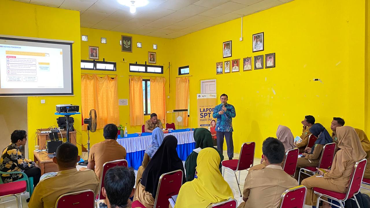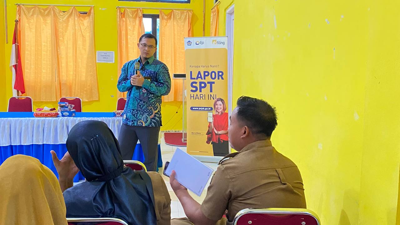 Kantor Pelayanan, Penyuluhan, dan Konsultasi Perpajakan (KP2KP) Ranai kembali menyelenggarakan sosialisasi Peraturan Menteri Keuangan Nomor 59/PMK.03/2022 (PMK 59) di Kecamatan Bunguran Selatan, Natuna, Kepulauan Riau (Selasa, 13/9). Acara dihadiri oleh para bendahara kecamatan, desa, sekolah, dan puskesmas di wilayah Kecamatan Bunguran Selatan.