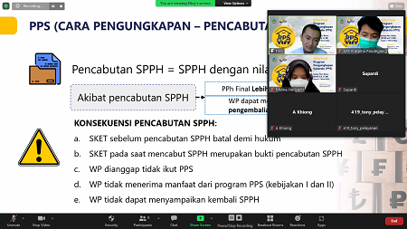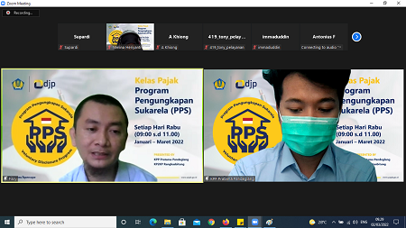 Kantor Pelayanan, Penyuluhan, dan Konsultasi Perpajakan (KP2KP) Rangkasbitung mengadakan Kelas Pajak Program Pengungkapan Sukarela (PPS) melalui aplikasi Zoom Meeting dari Kabupaten Pandeglang (Rabu, 02/03).