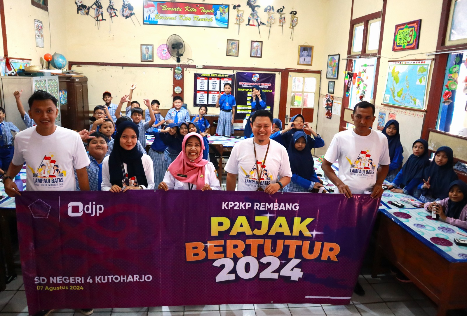 Kantor Pelayanan, Penyuluhan, dan Konsultasi Perpajakan (KP2KP) Rembang menggelar acara Pajak Bertutur dengan tema "Lampaui Batas, Bangkit Untuk Indonesia Emas". Acara ini diselenggarakan serempak di seluruh Indonesia, bertujuan untuk meningkatkan kesadaran akan pentingnya pajak sejak usia dini. Kegiatan ini dilaksanakan di SD Negeri 4 Kutoharjo, Jawa Tengah, dengan melibatkan 30 siswa SD sebagai peserta (Rabu, 7/8).