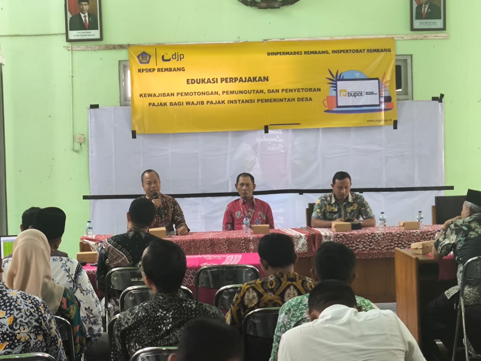 Kantor Pelayanan, Penyuluhan dan Konsultasi (KP2KP) Rembang bekerja sama dengan Kantor Pelayanan Pajak (KPP) Pratama Pati dan Dinas Pemberdayaan Masyarakat dan Desa (DINPERMADES) Kabupaten Rembang menyelenggarakan Sosialisasi Perpajakan terkait kewajiban perpajakan Instansi Pemerintah kepada Wajib Pajak Instansi Pemerintah Desa pada Selasa dan Kamis, 6 dan 8 Agustus 2024 bertempat di Aula DINPERMADES Rembang.