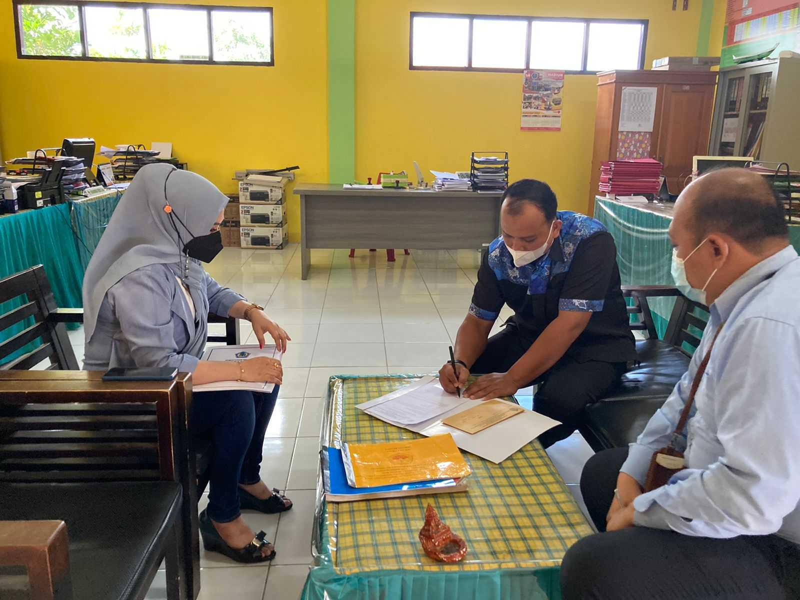 Kedatangan tim KP2KP Tanjung Selor ini disambut Salmiati Talib, Bagian Kepegawaian Sekolah dan Muhammad Rizki, Bagian Perlengkapan dan BMD Sekolah.