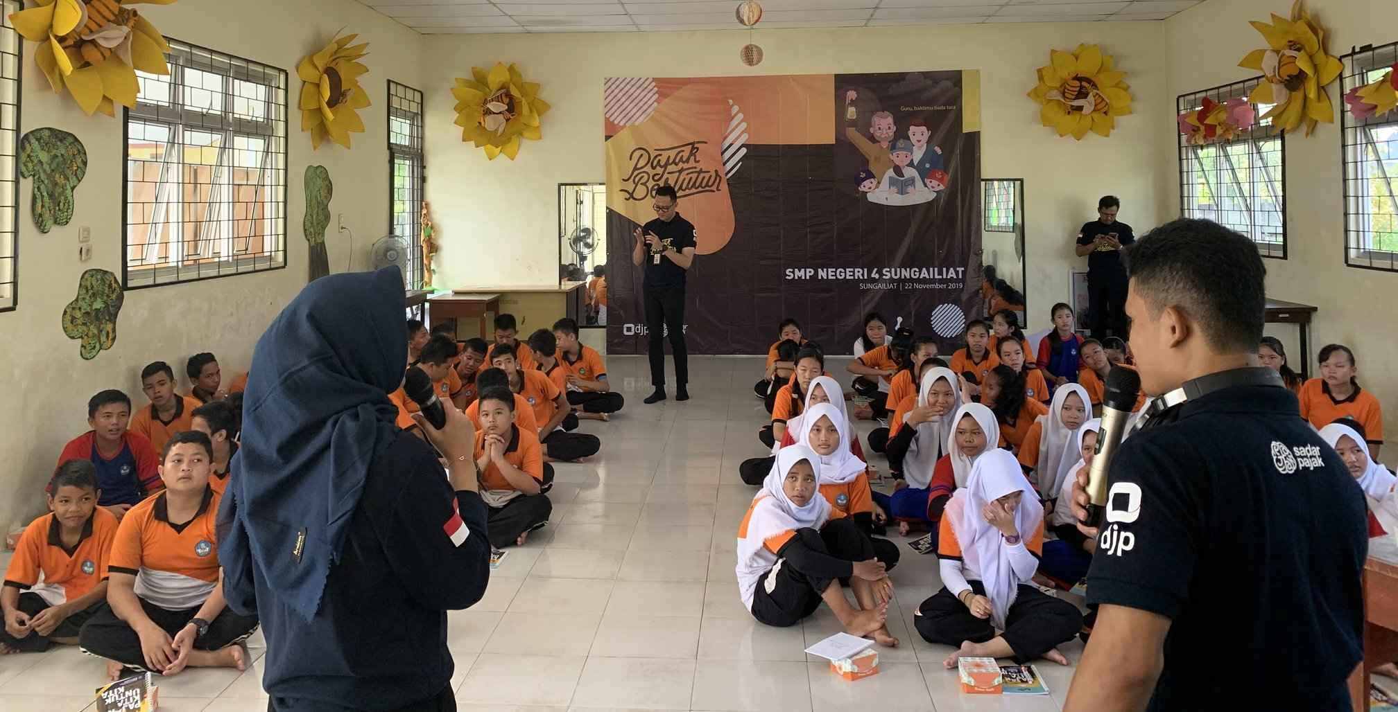 Kantor Pelayanan Penyuluhan dan Konsultasi Perpajakan (KP2KP) Sungailiat telah menyelenggarakan kegiatan rutin tahunan Pajak Bertutur 2019 di SMP N 4 Sungailiat, Kabupaten Bangka (Jumat, 22/11). Bertempat di aula SMP N 4 Sungailiat, Kabupaten Bangka, siswa-siswi antusias mengikuti pemaparan materi Pajak Bertutur. Acara semakin cair dan meriah dengan diadakannya lomba Teka-teki Silang di sela-sela acara.