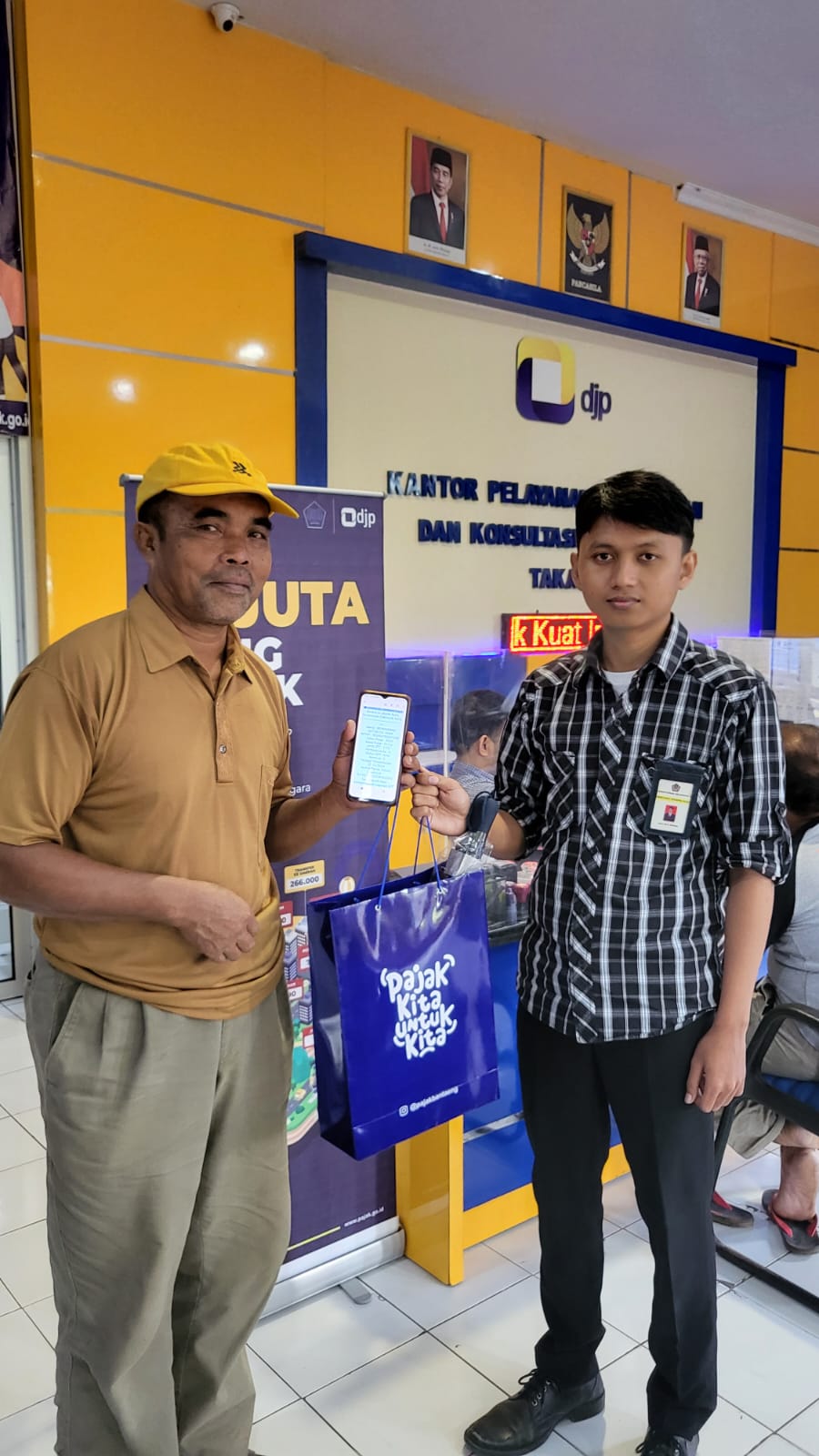 KP2KP Takalar memberikan apresiasi berupa pemberian souvenir sebagai bentuk terima kasih kepada wajib pajak atas inisiatif dan antusias dalam melaporkan SPT Tahunan di awal tahun sehingga bisa menjadi contoh bagi wajib pajak lain. Pelaporan SPT Tahunan Orang Pribadi Tahun Pajak 2023 sudah dapat dilaporkan mulai 1 Januari 2024 sampai dengan 31 Maret 2023 dimana tertuang dalam UU KUP Nomor 6 Tahun 1983 sebagaimana telah diubah terakhir dengan UU HPP Nomor 7 Tahun 2021 untuk Surat Pemberitahuan Tahunan Pajak Penghasilan Wajib Pajak Orang Pribadi, paling lama 3 (tiga) bulan setelah akhir tahun pajak.